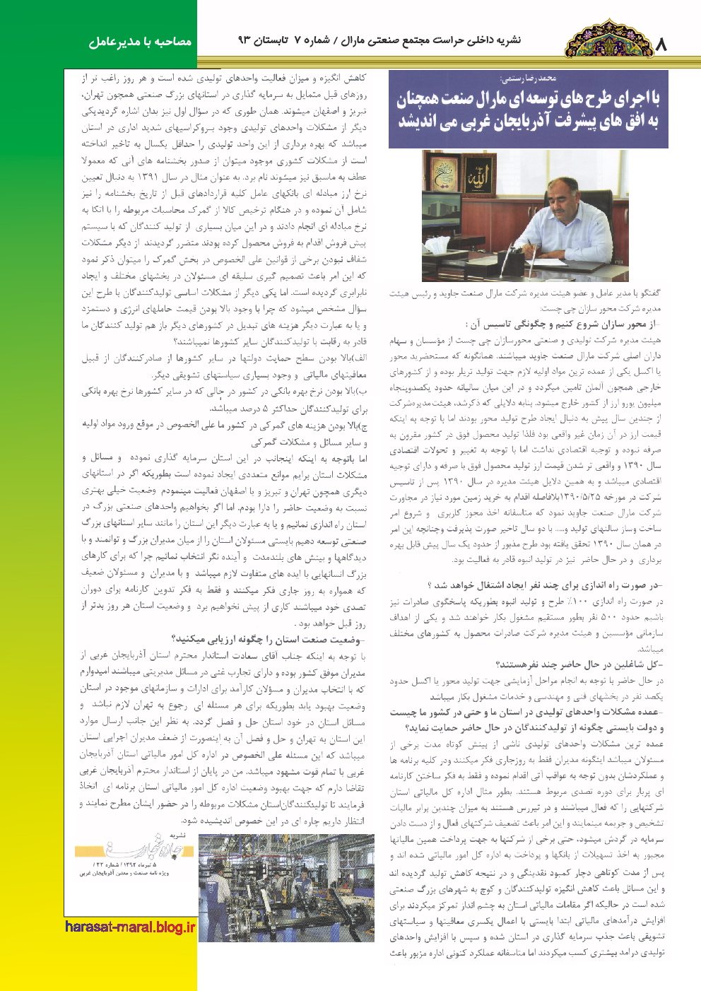 شرکت مارال صنعت در نشریه بانک سپه