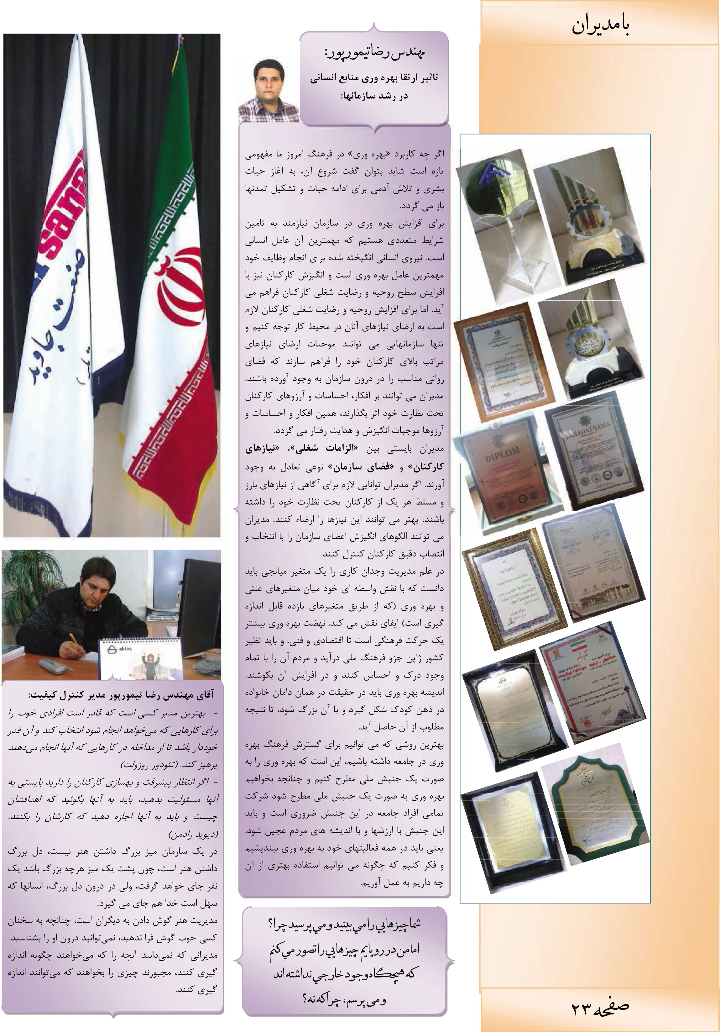 تجلیل از مدیر کنترل کیفیت نمونه استانی