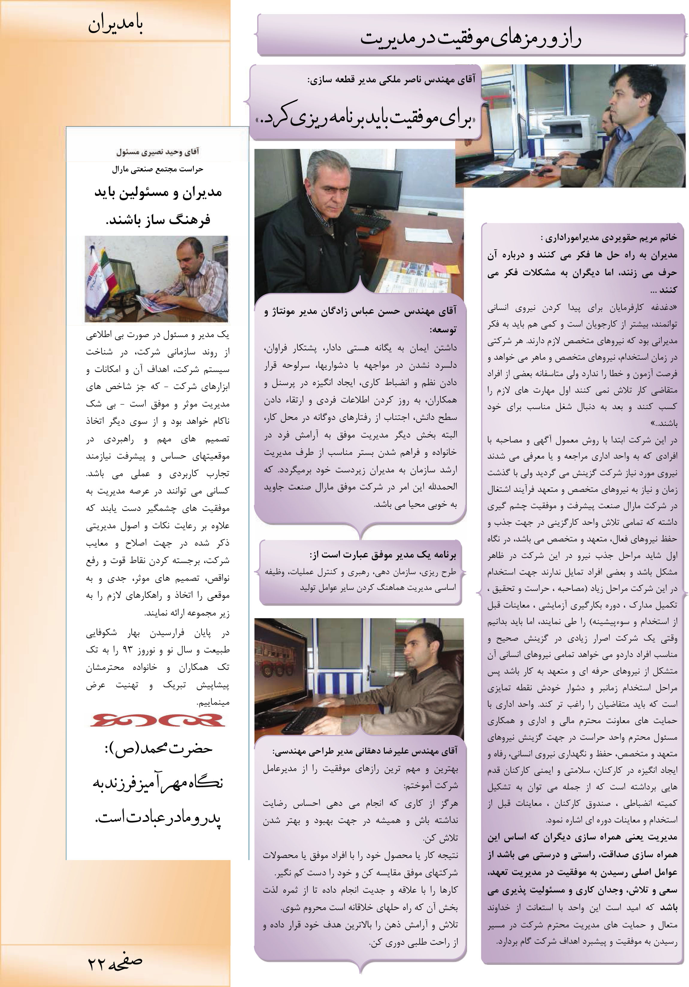 مدیر عامل شرکت مارال صنعت در مصاحبه با خبرگزاری سازمان تامین اجتماعی